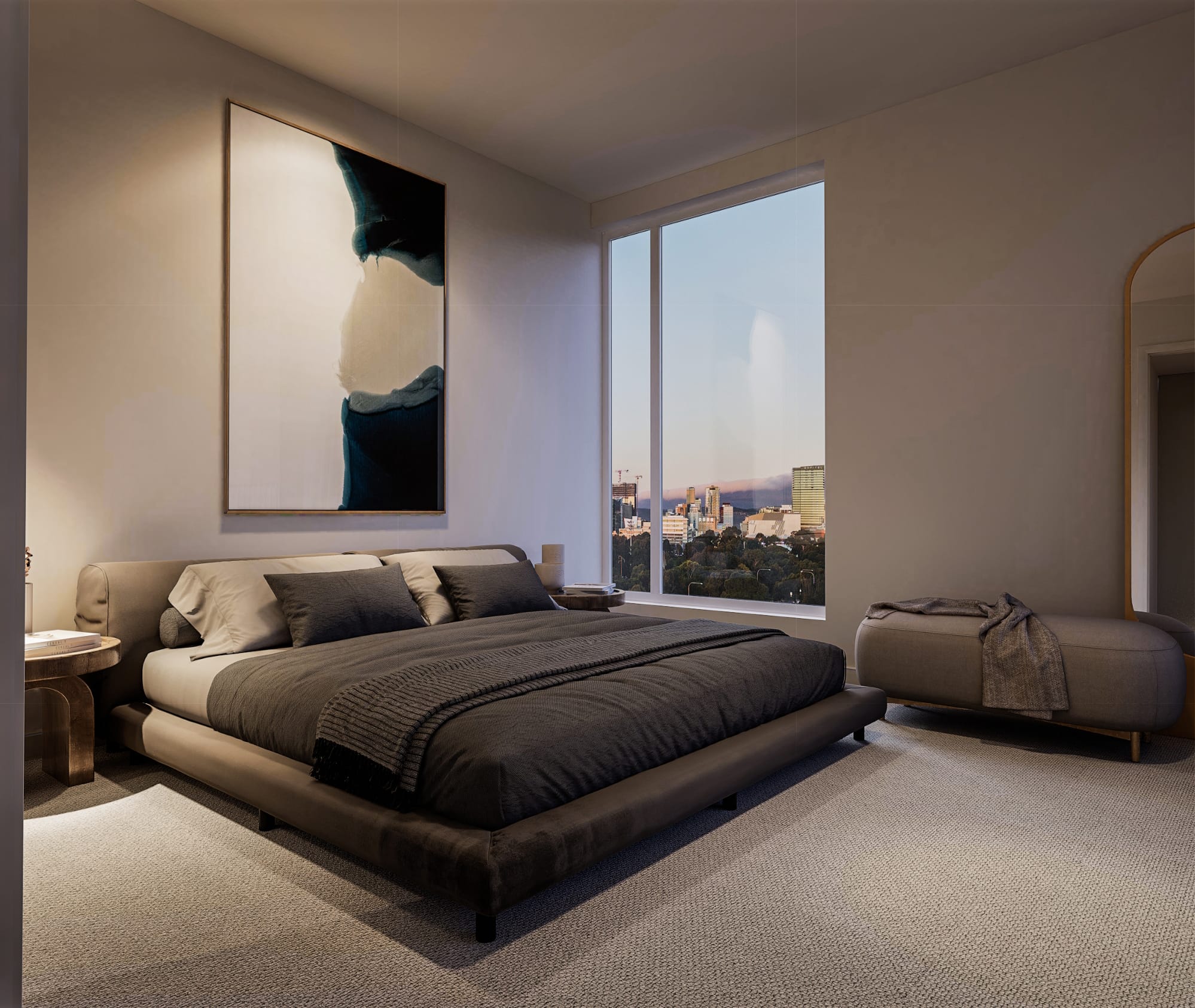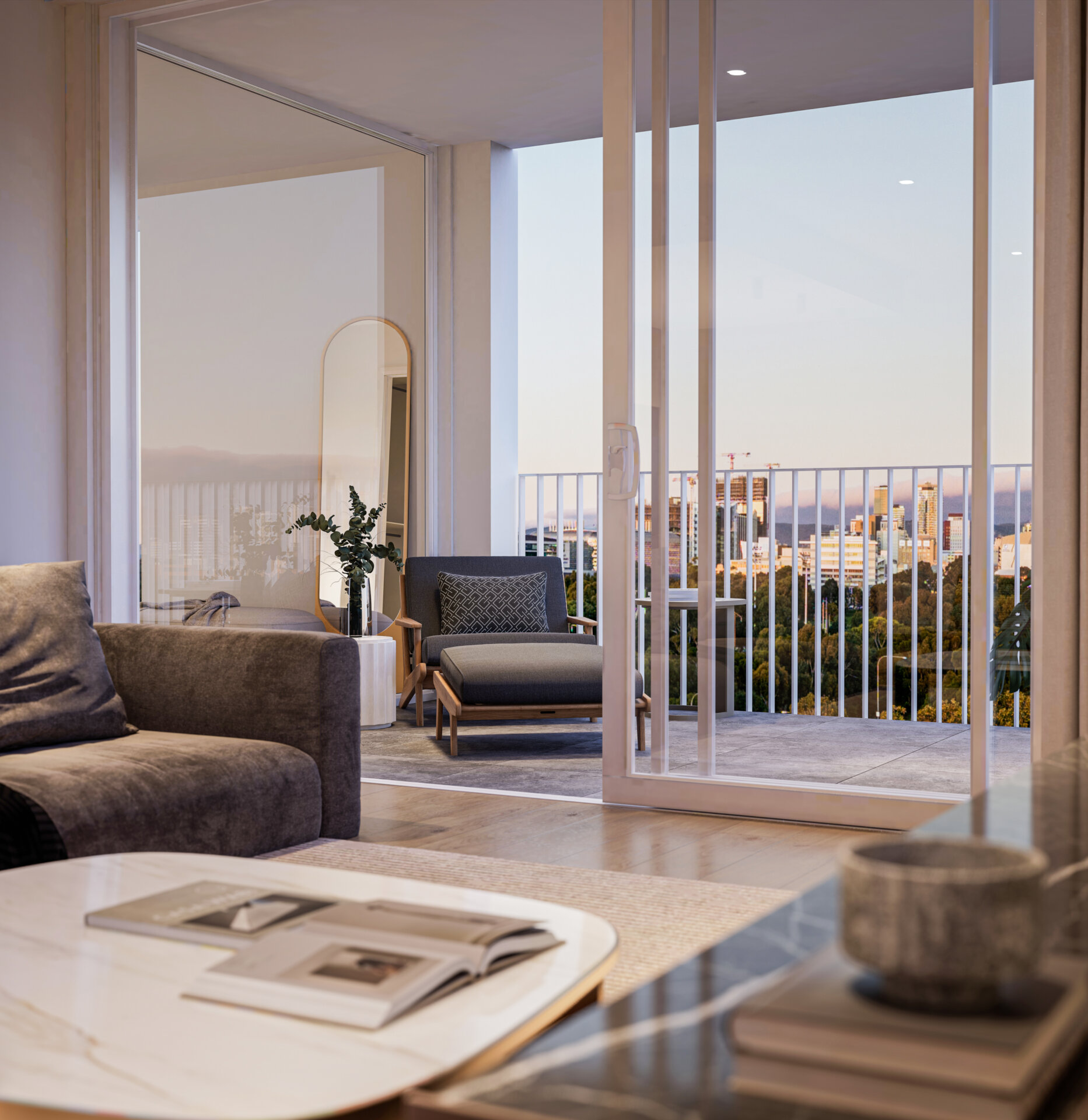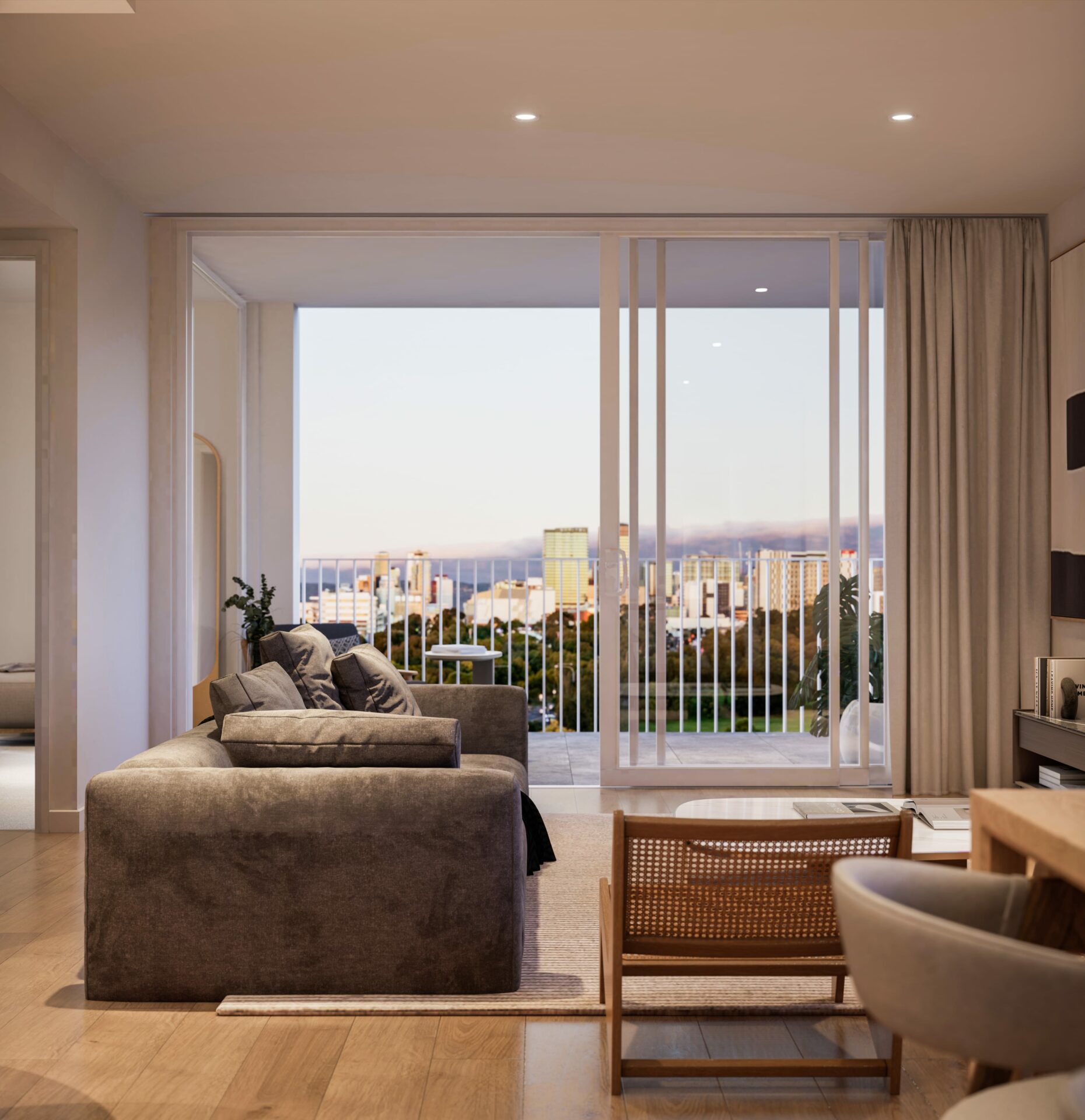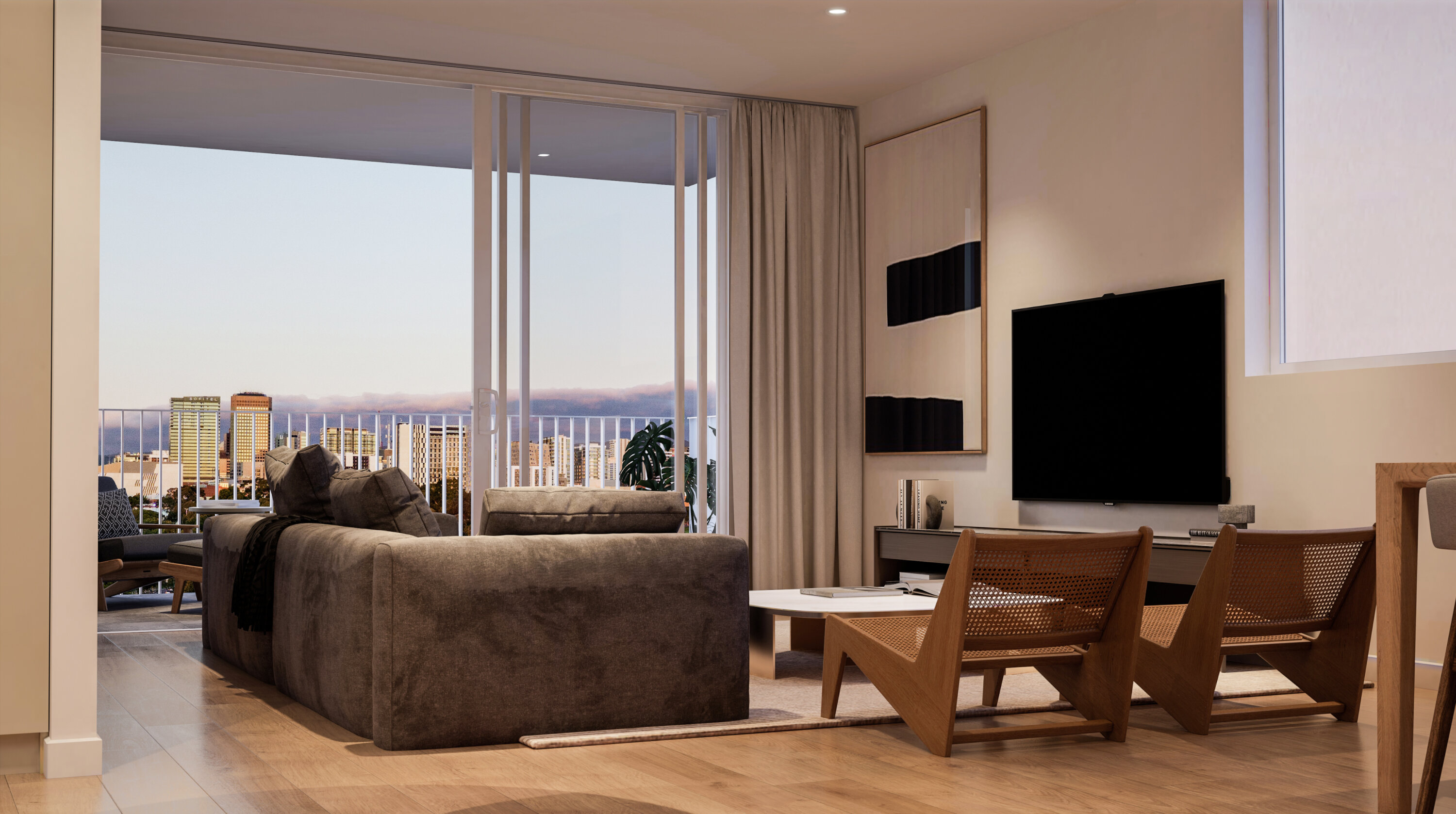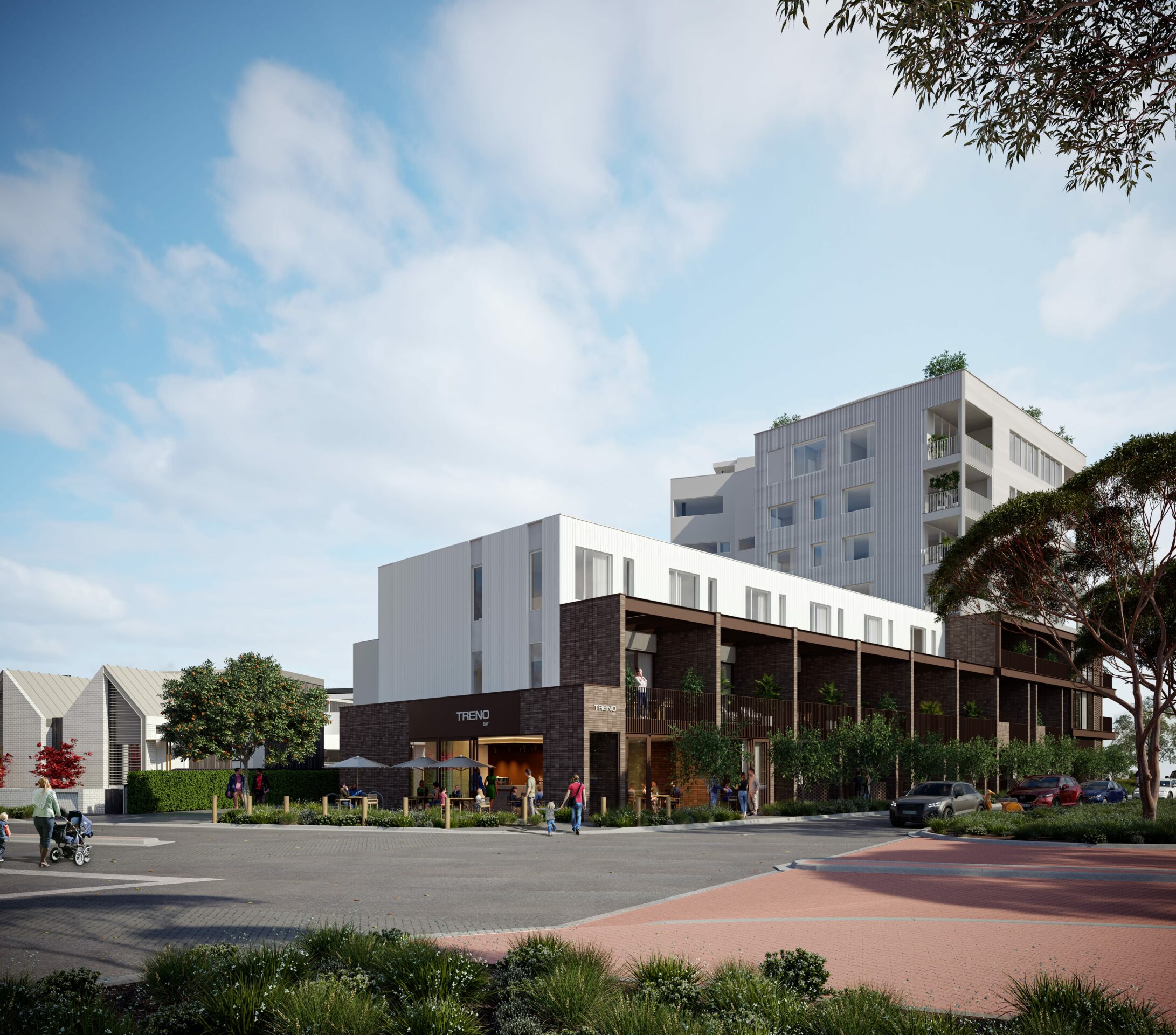 Treno offers a blend of urban and suburban lifestyles. This mixed-use development has both apartments and townhouses, balancing modern conveniences with the charm of Mile End. A highlight of the design by Studio Nine Architects is the communal rooftop terrace with city views.